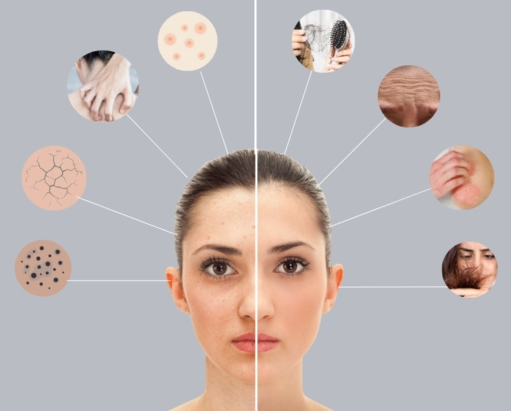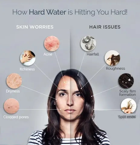 L'eau dure provoque des problèmes de peau comme l'acné, les allergies, les éruptions cutanées et l'eczéma, ainsi que des problèmes capillaires comme les pellicules, la sécheresse et la chute des cheveux. Elle entraîne également une accumulation de minéraux qui réduit la durée de vie des équipements sanitaires.